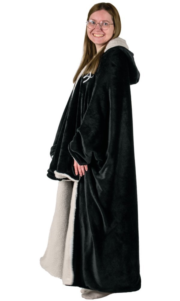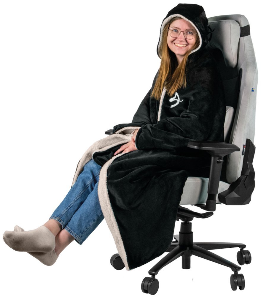 Systém knoflíků umožňuje přizpůsobit deku vašim potřebám – vytvořte rukávy pro hraní s ovladačem nebo psaní na klávesnici, upevněte ji kolem židle pro pevné posazení, nebo ji noste jako klasickou deku s kapucí. Deka se přizpůsobí vám, ne naopak.